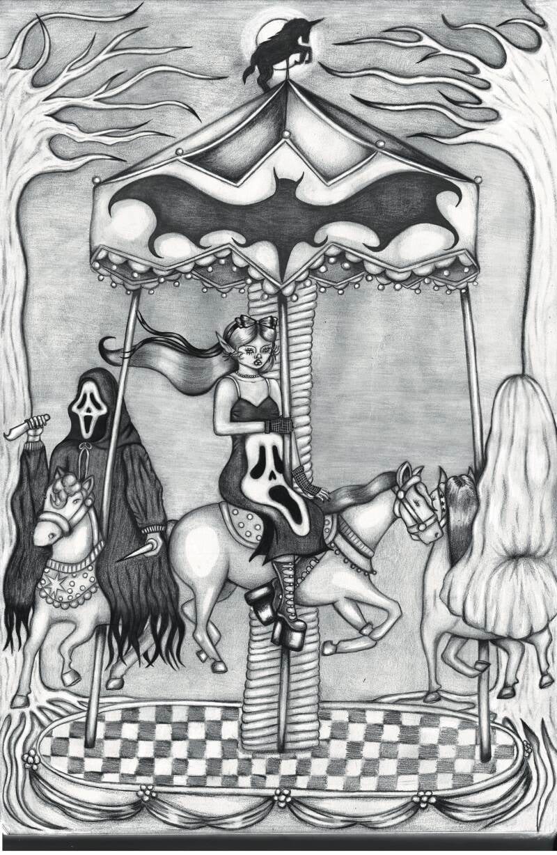 Bodega Slasher Fashion Killer, ilustración de moda inspirada la marca mexicana Bodega Slasher de espirítu sangriento y del terror.